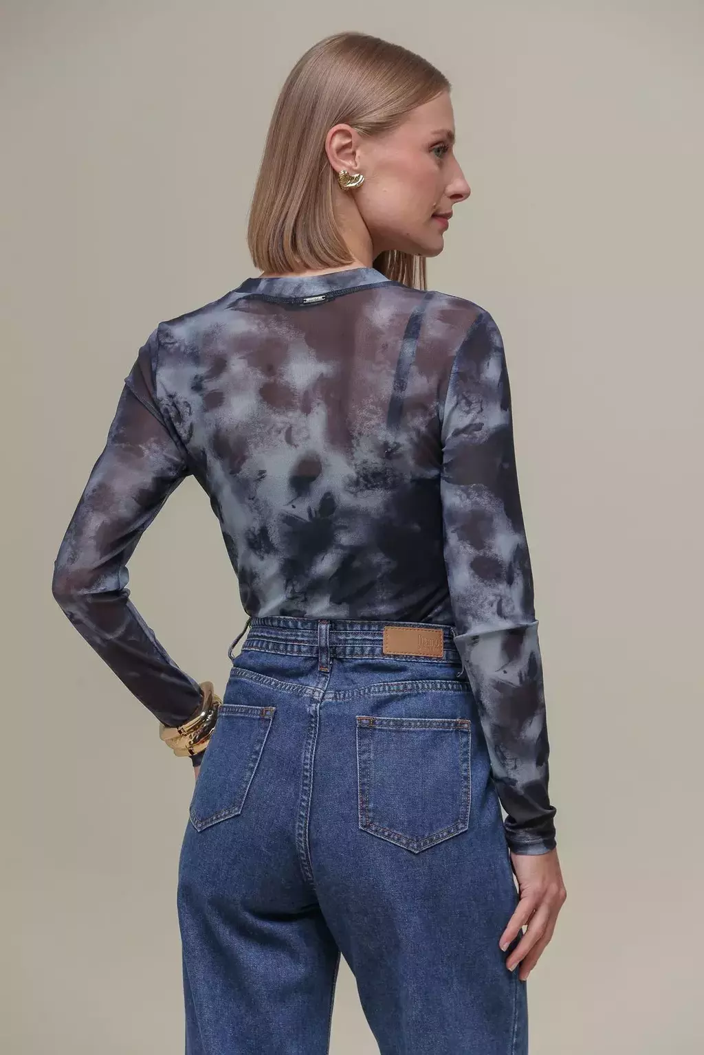 Body em Tule Azul com Estampa Marmorizada: Elegância e Versatilidade